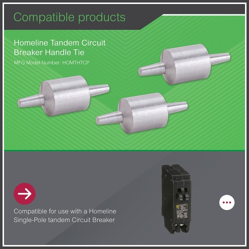 Schneider Electric HOMTHT - Mini circuit breaker accessory, Homeline, handle tie, 120/240VAC, ties two 1 pole tandem circuit breakers