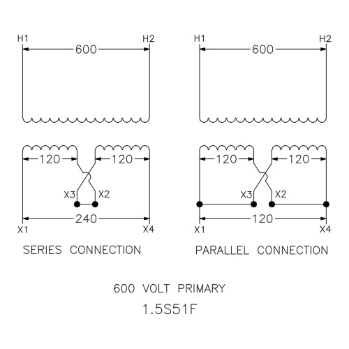 Schneider Electric 1.5S51F Dry Type Transformer - Single Phase, 1.5 kVA, 8 Amp, 600V In, 120/240V Out