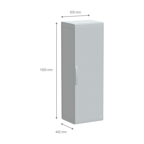 Schneider Electric NSYPLA1554G - Thalassa PLA, Polyester, 1 Door, Solid front, Rear/Front Accessibility, Reversible 120° Opening, 4 points lock, 5 mm double-bar, NEMA 3/3R/3X/2/1/13/3S/5/12 - 59.1" x 19.7" x 16.5" (HxWxD)