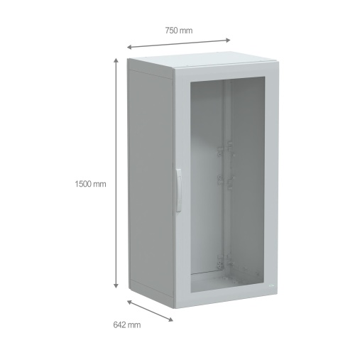Schneider Electric NSYPLA1576TG - Thalassa PLA, Polyester, 1 Door, Transparent front, Rear/Front Accessibility, Reversible 120° Opening, 4 points lock, 5 mm double-bar, NEMA 13/3X/3R/2/3/5/3S/1/12 - 59.1" x 29.5" x 24.4" (HxWxD)