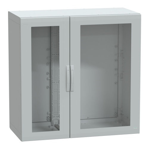 Schneider Electric NSYPLA12126TG - Thalassa PLA, Polyester, 2 Doors, Transparent front, Front/Rear Accessibility, Right and left 120° Opening, 4 points lock, 5 mm double-bar, NEMA 2/12/1/13 - 49.2" x 49.2" x 24.4" (HxWxD)