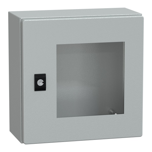 Schneider Electric NSYCRN33150T - PanelSeT CRN, Steel, 1 Door, Glass, Front Accessibility, Reversible 120° Opening, NEMA 4/4X - 11.8" x 11.8" x 5.9" (HxWxD)