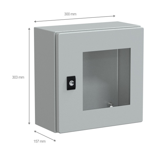 The compact enclosure is made of steel (body), steel and security glass (door), making it durable and resistant