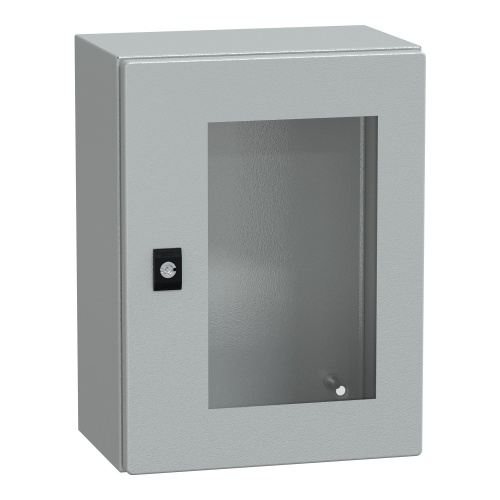 Schneider Electric NSYCRN43200T - PanelSeT CRN, Steel, 1 Door, Glass, Front Accessibility, Reversible 120° Opening, NEMA 4/4X - 15.7" x 11.8" x 7.9" (HxWxD)