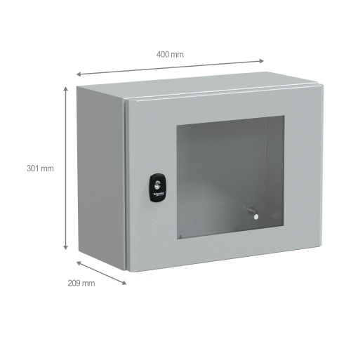 Schneider Electric NSYS3D3420T - PanelSeT S3D, Steel, 1 Door, Glass, Front Accessibility, Reversible 120° Opening, NEMA 4X/13 - 11.8" x 15.7" x 7.9" (HxWxD)