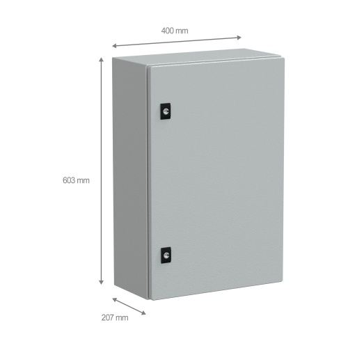 The compact enclosure is made of galvanized steel (body), steel (door), making it durable and resistant