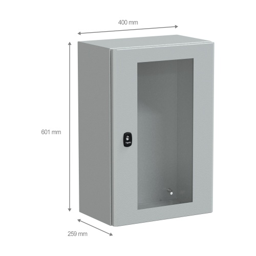 Schneider Electric NSYS3D6425T - PanelSeT S3D, Steel, 1 Door, Glass, Front Accessibility, Reversible 120° Opening, NEMA 4X/13 - 23.6" x 15.7" x 9.8" (HxWxD)