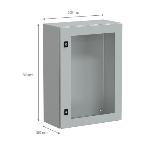 The compact enclosure is made of steel (body), steel and security glass (door), making it durable and resistant