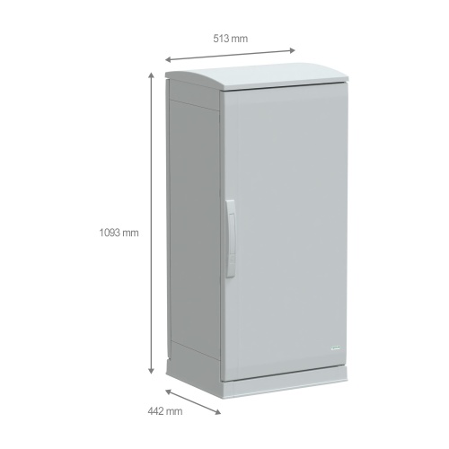 Schneider Electric NSYPLAZT1054G - Thalassa PLA, Polyester, 1 Door, Solid front, Front/Bottom/Top/Rear Accessibility, Reversible 180° Opening, 4 points lock, handle with 5 mm double bar insert, IP44 - 39.4" x 19.7" x 16.5" (HxWxD)