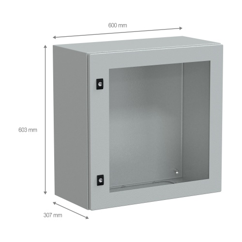 The compact enclosure is made of steel (body), steel and security glass (door), making it durable and resistant