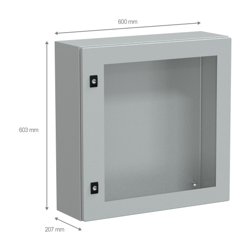 The compact enclosure is made of steel (body), steel and security glass (door), making it durable and resistant