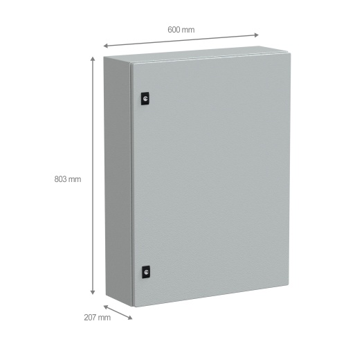 The compact enclosure is made of galvanized steel (body), steel (door), making it durable and resistant