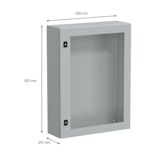 The compact enclosure is made of steel (body), steel and security glass (door), making it durable and resistant