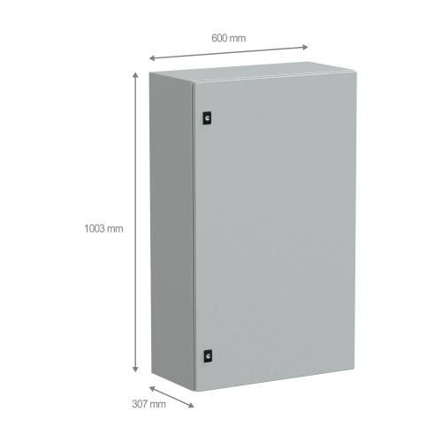 The compact enclosure is made of galvanized steel (body), steel (door), making it durable and resistant