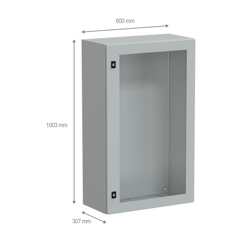 The compact enclosure is made of steel (body), steel and security glass (door), making it durable and resistant