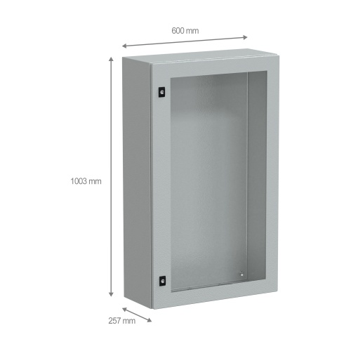 The compact enclosure is made of steel (body), steel and security glass (door), making it durable and resistant