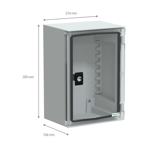 Schneider Electric NSYPLM32TG - Thalassa PLM, Polycarbonate, Polyester, Transparent, Front Accessibility, NEMA 4X/13 - 12.2" x 8.5" x 6.3" (HxWxD)