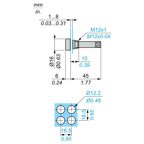 It is part of the range Harmony XVL diameter 8-12 mm plastic pilot lights.