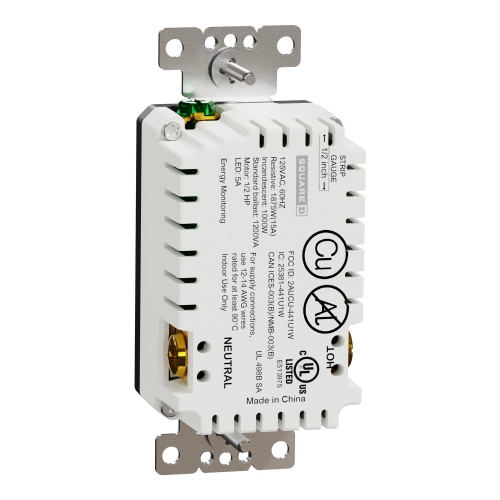 Schneider Electric SQR44102BKZ - Socket-outlet, X Series, Z-Wave Plus energy monitoring, 15A, 125V, tamper resistant, matte finish, black
