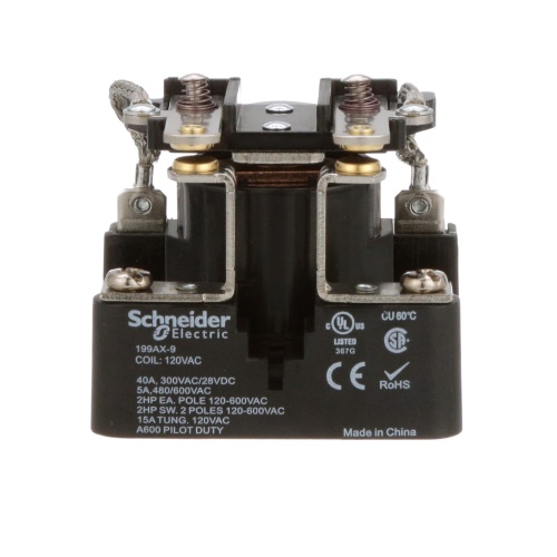 Schneider Electric 199AX-9 Power Relay - DPST, 40 Amp