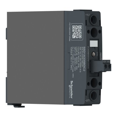 Schneider Electric SSD1A335BDC2 - DIN rail mount relay, Harmony Solid State Relays, 35A, zeroVoltage switching, contactor configuration, input 4...32V DC, output 48...600V AC