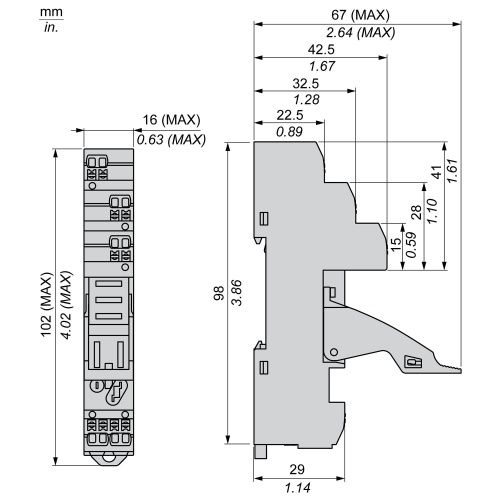 Schneider Electric RGZE05P - Push in socket with clamp, Harmony, for RXG1 relays, 10A, push in terminals, separate contact