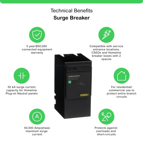 Schneider Electric HOM250PSPD - Surge protection device, Homeline, whole home, 50kA, 120/240 VAC, 1 phase, 3 wire, SPD type 1