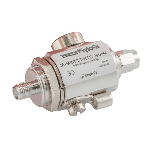 Our radio frequency coaxial surge protector product is commonly used for radio and antenna installations where part or all system equipment is outdoors to protect sensitive equipment and is designed to pass DC to 5.8 GHz while suppressing DC surge.While this radio frequency lightning surge suppressor operates in a range of frequencies from DC to 5.8GHz, it is supporting a power handling maximum of 150 Watts.RF surge protector GTH-RPSFM-AL from PolyPhaser incorporates gas discharge tube technology to provide protection for equipment at up to the max. power of 150W.Our coax surge protection device for RF is manufactured with a SMA bulkhead connection in and a SMA bulkhead out.GTH-RPSFM-AL is constructed with a female gender for the input and male for the output.