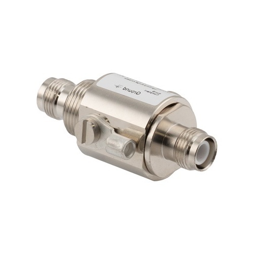 Our radio frequency coaxial surge protector product is commonly used for radio and antenna installations where part or all system equipment is outdoors to protect sensitive equipment and is designed to pass DC to 6 GHz while suppressing DC surge.Our coax surge protection device for RF is manufactured with a TNC bulkhead connection in and a TNC bulkhead out.GTH-RPTFF-AL is constructed with a female gender for the input and female for the output.