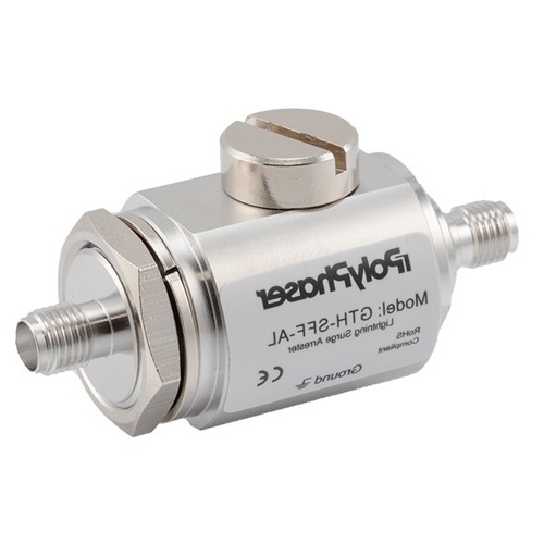 Our radio frequency coaxial surge protector product is commonly used for radio and antenna installations where part or all system equipment is outdoors to protect sensitive equipment and is designed to pass DC to 5.8 GHz while suppressing DC surge.While this radio frequency lightning surge suppressor operates in a range of frequencies from DC to 5.8GHz, it is supporting a power handling maximum of 150 Watts.RF surge protector GTH-SFF-AL from PolyPhaser incorporates gas discharge tube technology to provide protection for equipment at up to the max. power of 150W.Our coax surge protection device for RF is manufactured with a SMA bulkhead connection in and a SMA bulkhead out.GTH-SFF-AL is constructed with a female gender for the input and female for the output.