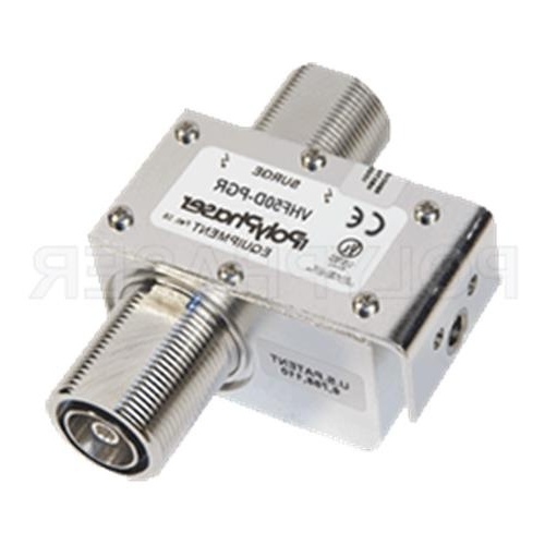 Our radio frequency coaxial surge protector product is commonly used for radio and antenna installations where part or all system equipment is outdoors to protect sensitive equipment and is designed to pass 100 MHz to 512 MHz while suppressing DC surge.While this radio frequency lightning surge suppressor operates in a range of frequencies from 100MHz to 512MHz, it is supporting a power handling maximum of 750 Watts.RF surge protector VHF50D-PGR from PolyPhaser incorporates surge filter technology to provide protection for equipment at up to the max. power of 750W.Our coax surge protection device for RF is manufactured with a 7/16 DIN bulkhead connection in and a 7/16 DIN bulkhead out.VHF50D-PGR is constructed with a female gender for the input and female for the output.