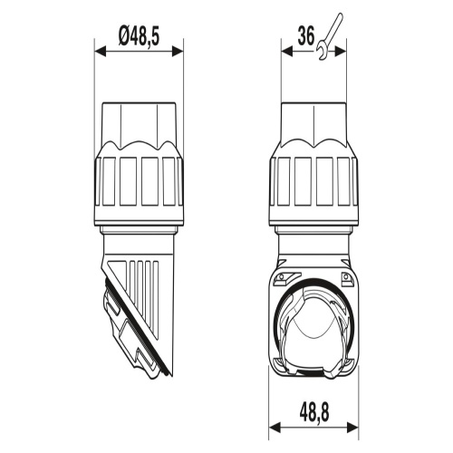 Phoenix Contact 1407672 The EVO plastic cable gland features a bayonet locking mechanism and is designed to house cables of series B, specifically sized M40, accommodating cable diameters between 19-28 millimeters.