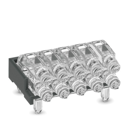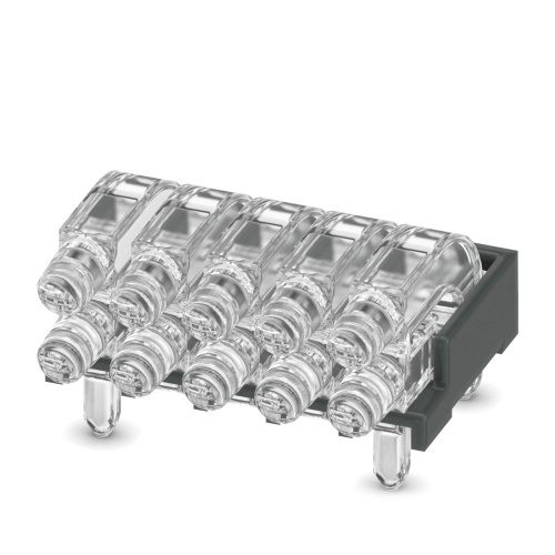 Phoenix Contact 1071310 The product features multiple light guides with glare protection, a rigid design and a raised head that is conical in shape, emitting light from a spherical emission surface. It consists of 10 displays arranged in a 2x5 layout, with a pixel pitch of 2.54mm. The device offers ESD protection up to 8kV and can be used with various housing types including ME, ME-MAX, ME-IO, ME PLC, and EH ranges, provided the housing has been processed.