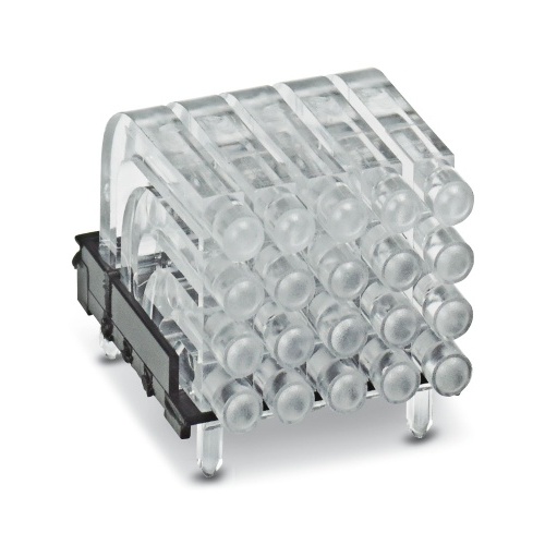 Phoenix Contact 2202321 Multiple light guides with glare protection are available in various configurations, including passive and rigid designs, featuring raised heads and spherical emission surfaces. These light guides come with 20 displays arranged in a 4x5 grid layout with a pitch of 2.54mm, providing suitable protection against electrostatic discharges (ESD) up to <8 kV. They can be used for several housing ranges including ME, ME-MAX, ME-IO, ME PLC, and EH, but require the housing to undergo processing before use.