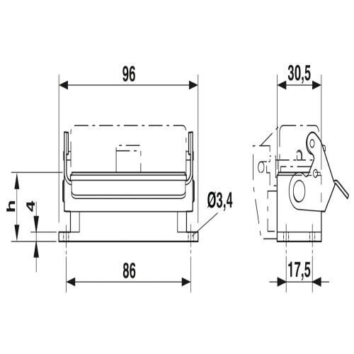Phoenix Contact 1672754 The Heavycon panel mounting base D25 features a single locking latch and measures 26mm in height, accompanied by a cover.