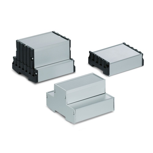 Phoenix Contact 2200948 The press-drawn section housing has a width of 101.8mm, length of 201.3mm and a depth of 2mm, specifically designed to be used with the UM-ALU 4 COVER PA lateral elements.