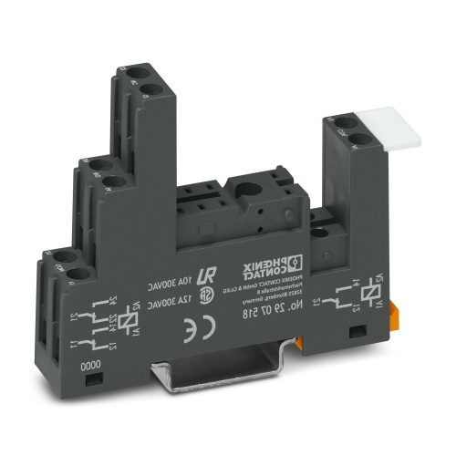 Phoenix Contact 2907518 The ECOR-1 relay base is suitable for use with miniature power relays or switching relays featuring one or two changeover contacts, and it offers a screw connection, as well as the option to plug in input/interference suppression modules. It is designed for mounting on the NS 35/7.5 platform.