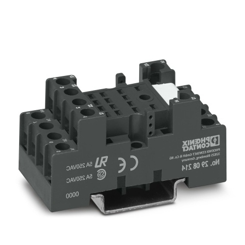 Phoenix Contact 2908214 The ECOR-2 relay base is designed specifically for industrial relays with a unique configuration featuring four changeover contacts. This base has a bolt connection system that allows it to be securely mounted onto an NS 35/7.5 platform, providing a reliable and compatible solution for industrial applications.