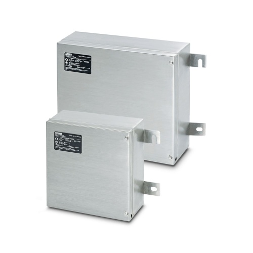 Phoenix Contact 2316417 A stainless steel field junction box designed for use in hazardous locations is available with 16 ports, ideal for industrial settings. This box includes a 12-spur block device coupler, suitable for either Foundation Fieldbus or PROFIBUS PA applications, as well as three terminal blocks for connecting trunk cables, offering flexibility and convenience for users.