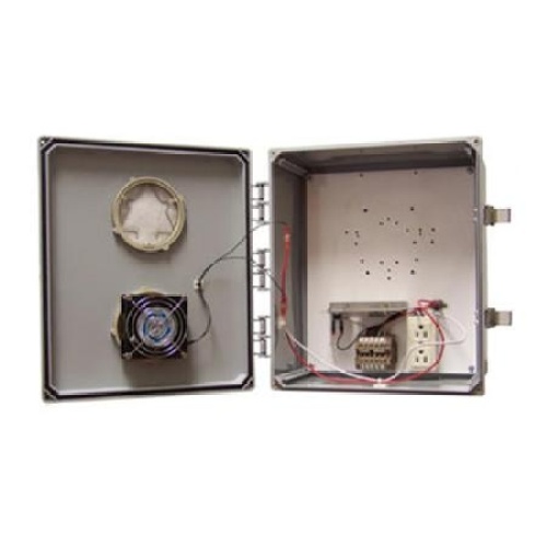 The enclosure includes a power receptacle that ships loose.