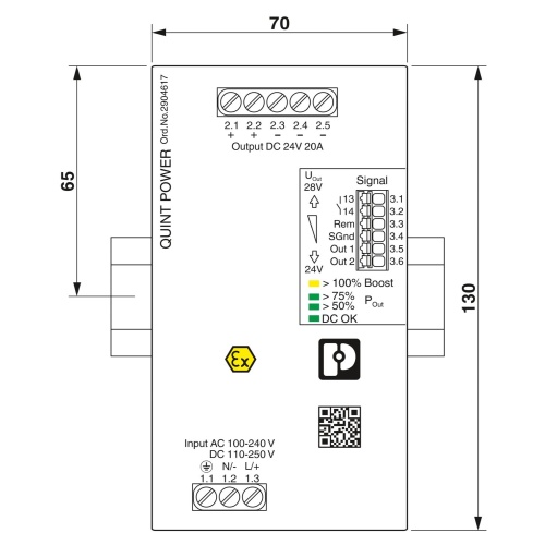 QUINT4-PS/1AC/24DC/20/+ Phoenix 2904617 Power supply 100 VAC - 240 VAC -15 % - +10 % 20 Amp 100 VAC - 240 VAC -15 % - +10 % Power Supplies and UPS