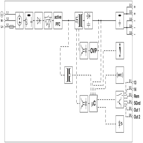 Phoenix Contact 2904603 The 24V DC power supply features a primary-switched design that offers flexibility in choosing the desired output current curve, along with selective fuse breaking technology for added safety. The device also includes an NFC interface and can be powered by a single-phase input source.
