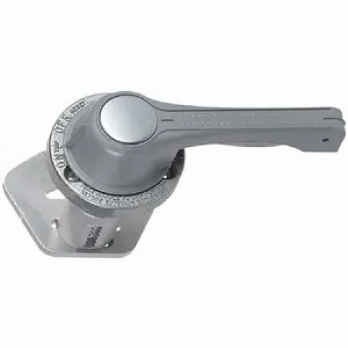 Killark EXH2C8 - Circuit breaker handle. Factory or field installed in a 3/4” NPSM opening. Has provision for Lock-On and Lock-Off with up to three padlocks. Consists of an external handle mechanism with through-the-enclosure shaft, internal toggle mechanism, and universal breaker pan. Copper free aluminum with 316 stainless steel shaft and sprongs. O-ring 70 durometer nitrile. Extruded aluminum bodies, stainless steel pins and stainless steel hardware. Factory or field installed in a 3/4" NPSM opening. Has provision for Lock-On and Lock-Off with up to three padlocks. Consists of an external handle mechanism with through-the-enclosure shaft and internal toggle mechanism and breaker pan. - For use with B7E, DB, EXB, XJB Series enclosures. Used to activate circuit breakers and motor circuit protectors from front cover.