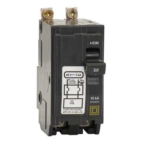 Schneider Electric QOB2505272 - Mini circuit breaker, QO, 50A, 2 pole, 120/240VAC, 10kA, bolt on, 48VDC rating