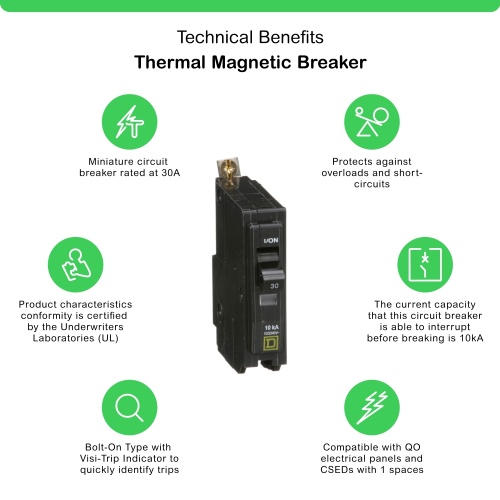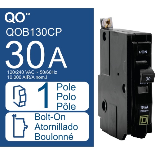 Schneider Electric QOB130CP - Mini circuit breaker, QO, 30A, 1 pole, 120/240VAC, 10kA, bolt on, consumer pack