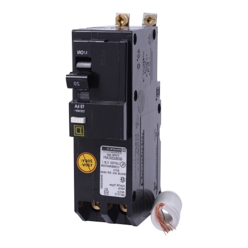 Schneider Electric QOB220VHCAFI - [TAA] Mini circuit breaker, QO, 20A, 2 pole, 120/240VAC, 22kA, bolt on, combo ARC fault, pigtail