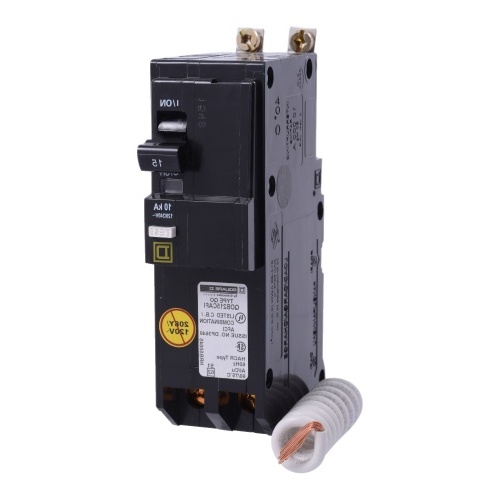 Schneider Electric QOB215VHCAFI - [TAA] Mini circuit breaker, QO, 15A, 2 pole, 120/240VAC, 22kA, bolt on, combo ARC fault, pigtail