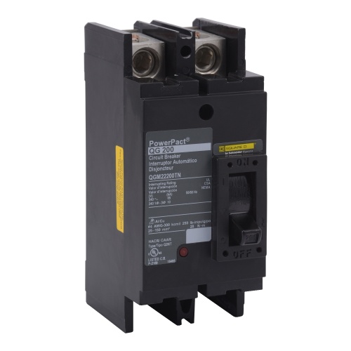 Schneider Electric QGM22200TN - Circuit breaker, PowerPacT Q, 200A, 2 pole, 240VAC, 65kA, lugs, thermal magnetic, 80%, top of panel