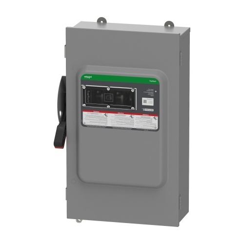Schneider Electric VH324BAWKGL - Safety switch, VisiPacT, heavy duty, fused, viewing window, NEMA 12, 240V, 200A, 3 pole, neutral bonded, ground lugs
