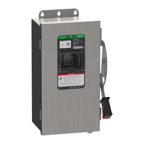 Schneider Electric VH362SSGL - Safety switch, VisiPacT, heavy duty, fused, viewing window, NEMA 4X, 600V, 60A, 3 pole, ground lugs